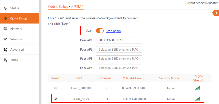 3.2 Click "Scan", and select the wireless network you want to connect,