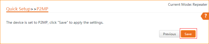 3.5 The device is set to P2MP, click "Save" to apply the settings.