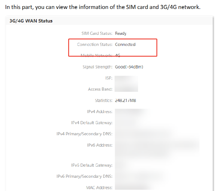 3、Click to enter the WAN status page and confirm that the "Connection Status" of both "3G/4G WAN" and "Ethernet WAN" is "Connected"; if so, the configuration is successful.