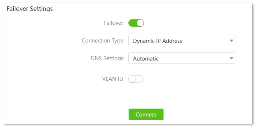 3、Click "Connect" at the bottom of "Failover Settings" to save the configuration.