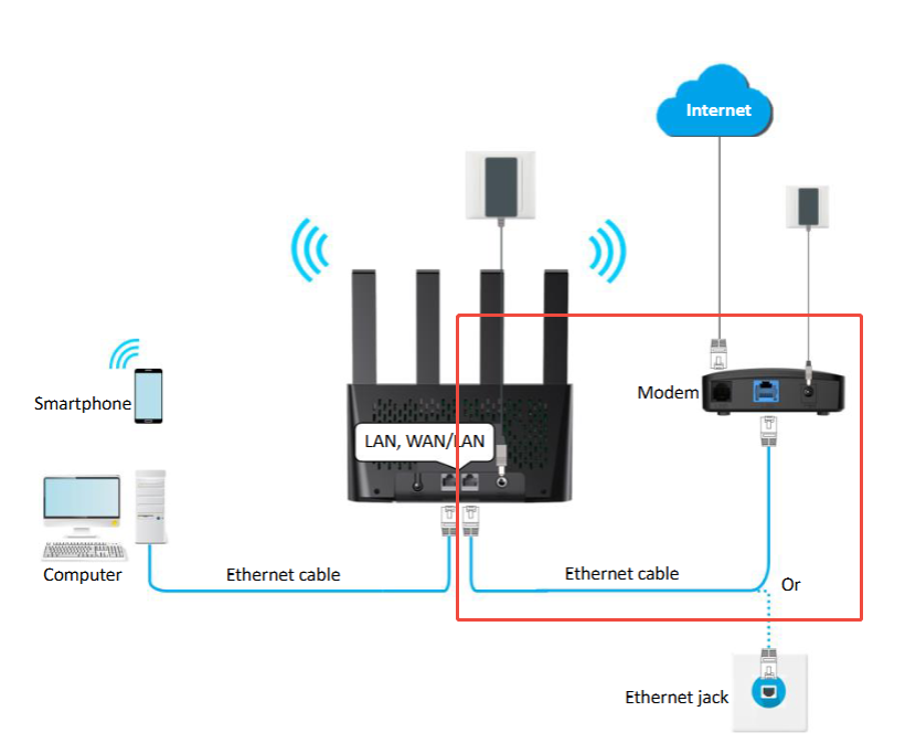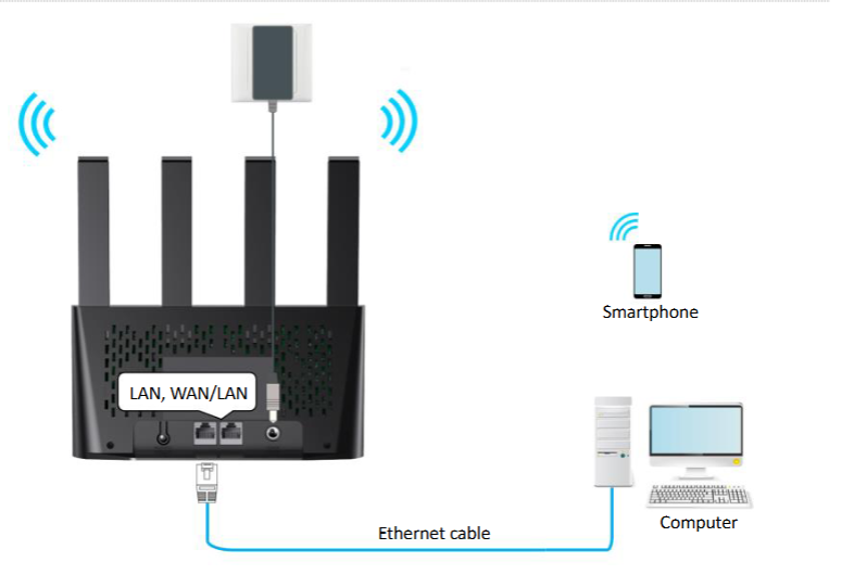 1、Hardware Connection: Connect the computer to the router's LAN port using an Ethernet cable (do not use the WAN/LAN port); or connect the device wirelessly to the Wi-Fi. Insert a working Nano SIM card into the router.Prepare another Ethernet cable for subsequently connecting the WAN/LAN port to the optical modem.