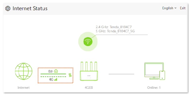 2、If you can see "Eth" (broadband) and "4G" (SIM card) without prompts like "Ethernet cable disconnected" or "No SIM card inserted", the configuration has initially taken effect.