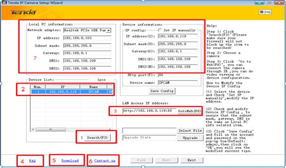 please refer to the help item on the right How to Modify the Device IP
