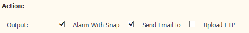 On Web page, click SYSTEM > Alarm Setting > Motion Detection. Select Alarm With Snap and Send Email to ,as page shows below .After setting ,click Apply to save the settings .
