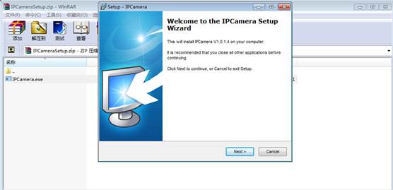 2) click open button to download IPCamerasetup.zip and open it in decompressing tool software like WinARA decompressing tool software.