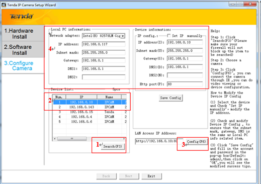 If it needs to set the camera IP manually ,please reference the help tips about How to Modify the device’s IP config at the right side of the page .