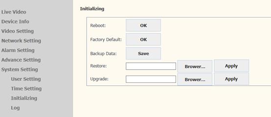 4) On Web page, click SYSTEM >System Setting > Initializing. It appears page as below.