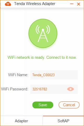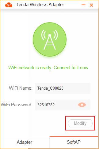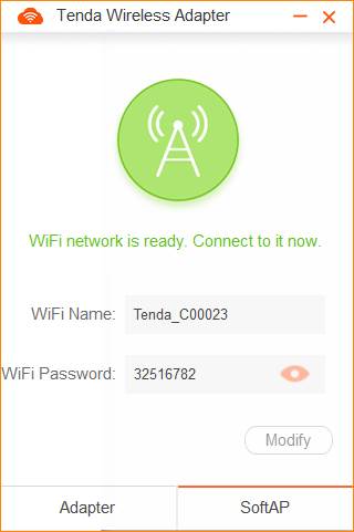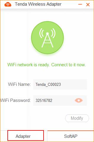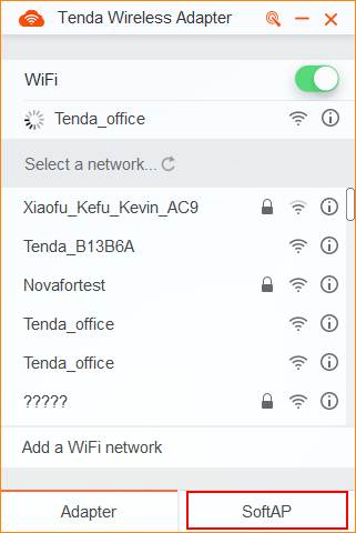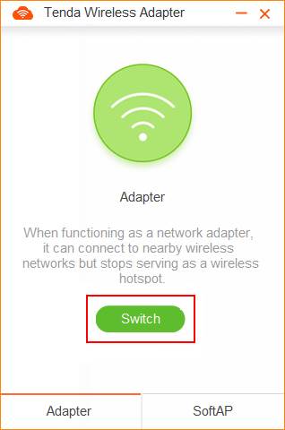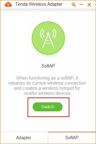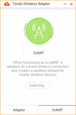Tenda U3 supports two kinds of working modes: Adapter and SoftAP. SoftAP can transfer your computer's wired network into wireless signal. SoftAP is working only when PC could access the internet.