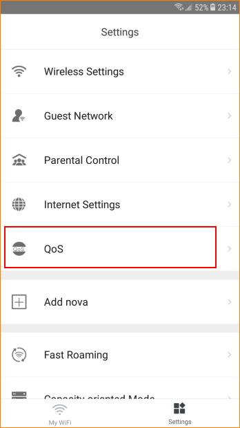 Step 1: Open APP, tap “Settings” > “QoS”.