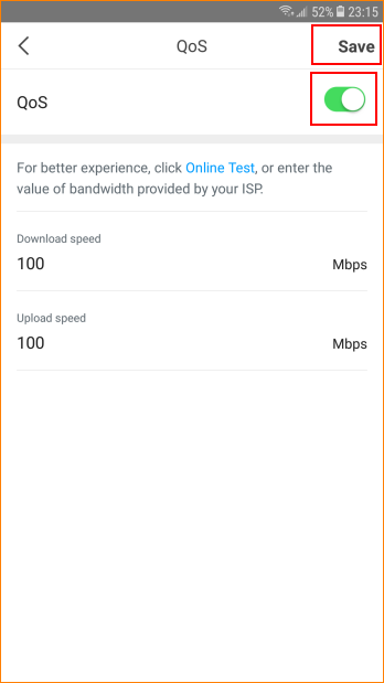 Step 2: Please enter reasonable download speed and upload speed. Then tap “Save”.