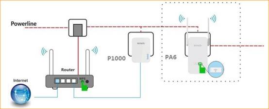 1. Plug the extender (PA6) next to the wireless router (with WPS enabled).