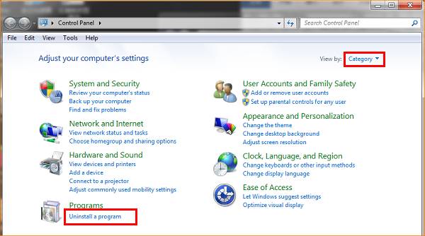 1. Open Control Panel, find and click “Uninstall a program” or open “Programs and Features”;